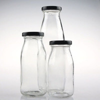 맞춤형 도매 투명 유리 신선한 우유 200ml 250ml 300ml 500ml 뚜껑이있는 요구르트 병
