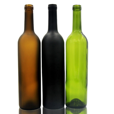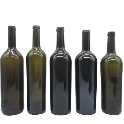 卸売り空750mlボルドーガラス瓶500mlアンティークグリーンクリアアンバーブラックカラーコルクまたはスクリューキャップ付きワインボトル